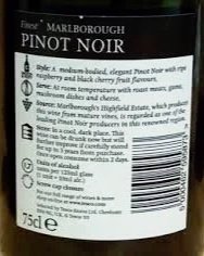 "A medium-bodied, elegant Pinot Noir with ripe raspberry and black cherry fruit flavours. Serve at room temperature with roast meats, game, mushroom dishes and cheese. Marlborough's Highfield Estate, which produces this wine from mature vines, is regarded as one of the leading Pinot Noir producers in this renowned region. Store in a cool, dark place. This wine can be drunk now but will further improve if carefully stored for up to 3 years from purchase. Once open consume within 2 days. Units of alcohol: 11 per 125ml glass (1 unit = 10ml alc). Screw cap closure"